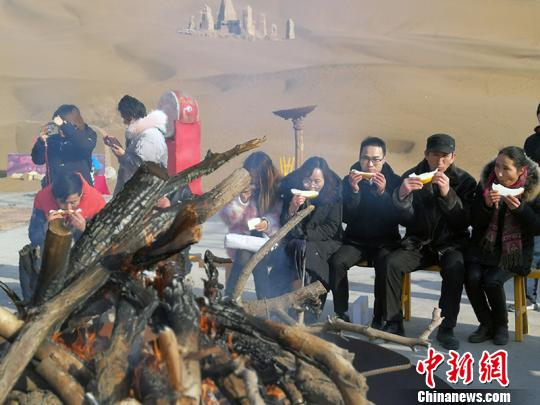 来自全国各地游客感受不一样的冬季,体验围着火炉吃瓜,沙漠边撸串的超爽刺激。 王小军 摄