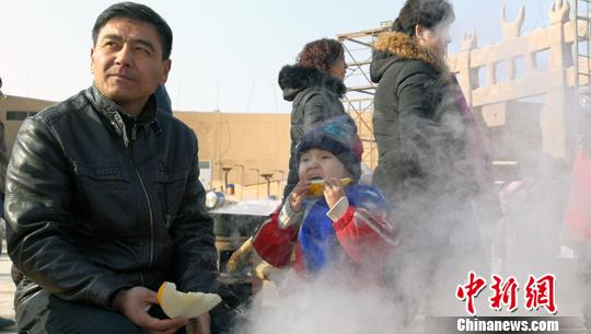 当地群众参与到活动中,围着火炉吃瓜。 王小军 摄