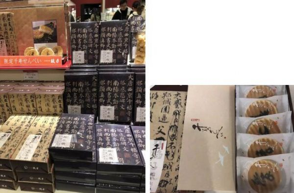 在展区门口的本次展览文创商品区,有一种《祭侄文稿》的“主题商品”——用文稿书法包装的点心。