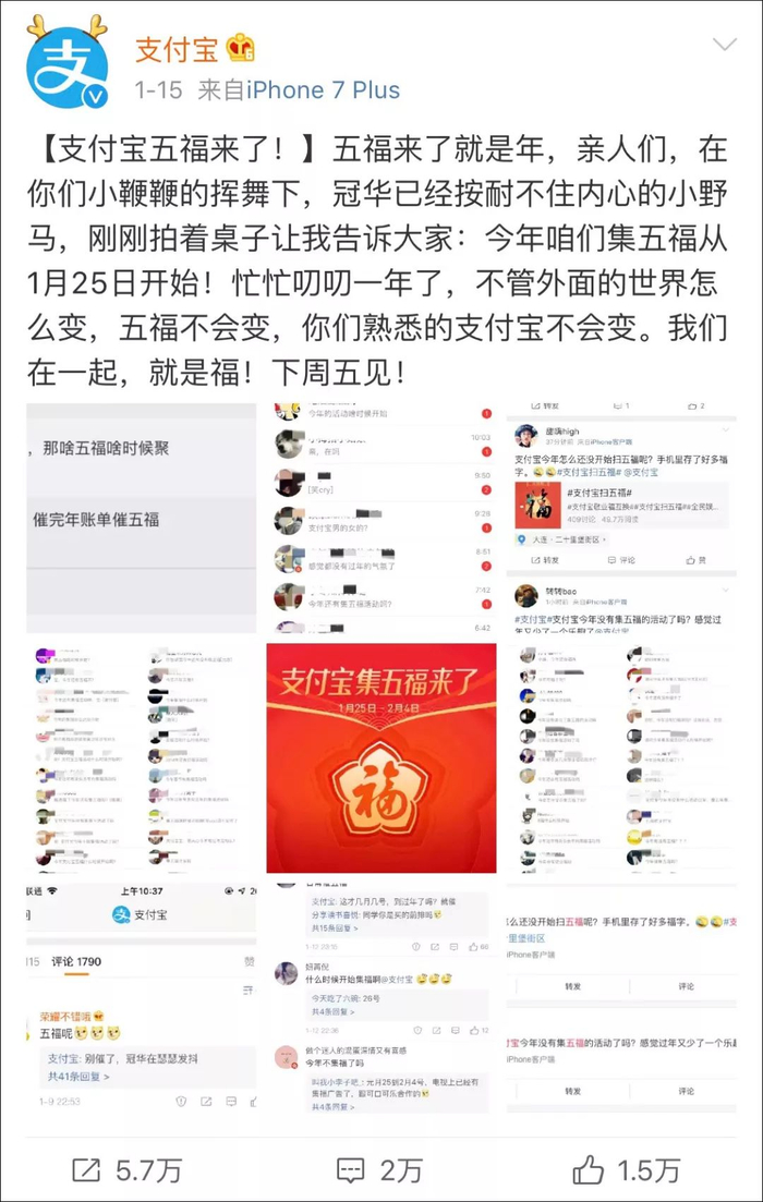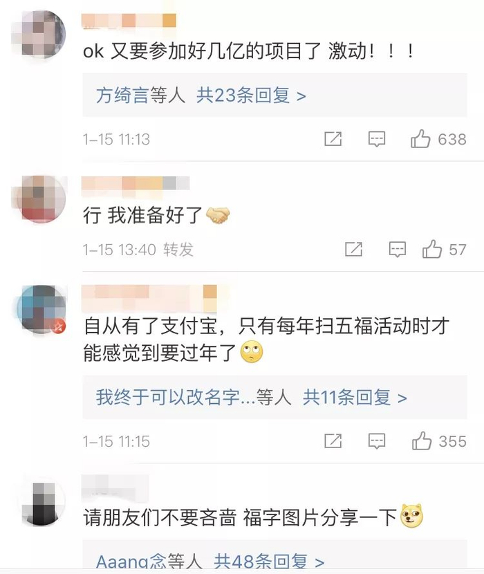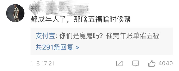 更有人天天跑到支付宝官微下“日常催五福”