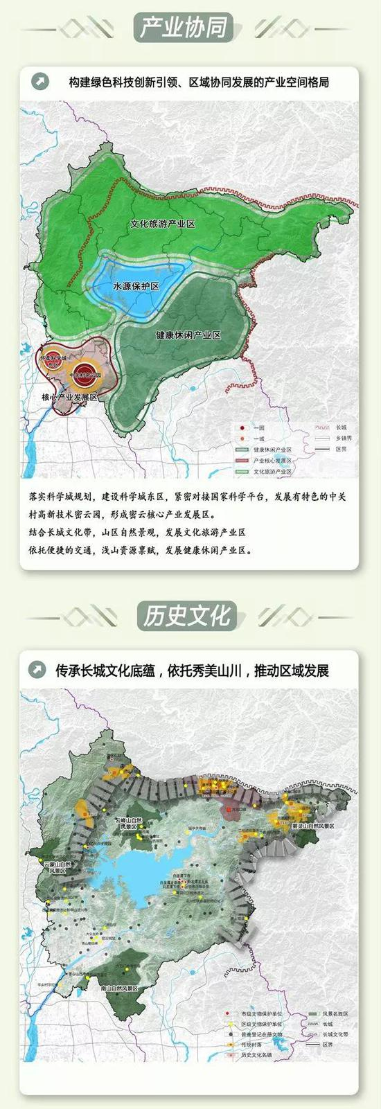 在产业协同上,构建绿色科技创新引领、区域协同发展的产业空间格局。其中,将落实科学城规划,建设科学城东区,紧密对接国家科学平台,发展有特色的中关村高新技术密云园,形成密云核心产业发展区。