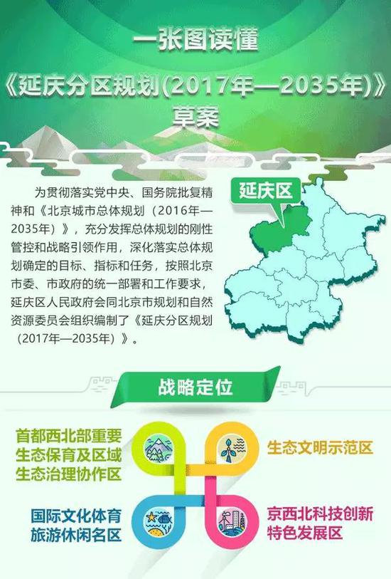 延庆分区规划1月18日起公告,突出冬奥世园引领,带动高质量绿色发展,将建设国际一流生态文明示范区。公示期限30天,市民可提出意见和建议。