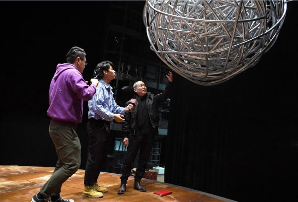 李六乙导演正在介绍舞台设计。(视觉中国)