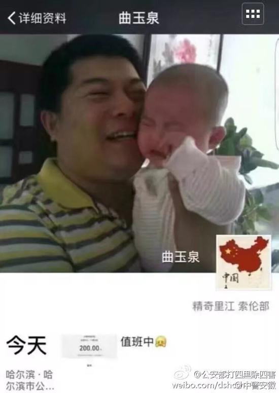 更令人揪心的是,就在当天,曲玉权在朋友圈里更新了一条状态,只有三个字——“值班中”,同时还配了一张200元微信红包的截图。红包来自妻子王丽晶。曲玉权的朋友圈封面,还是他笑着抱自己3岁女儿的画面。