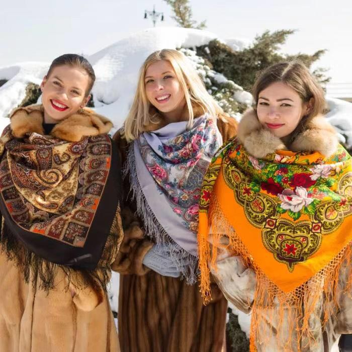 在俄罗斯,披肩是女性衣橱里必不可少的服饰。它不仅可以披在肩头,还能用来裹住头部,既为女性增添了几分娇媚动人的风致,又抵挡了冬日里的漫漫风寒。