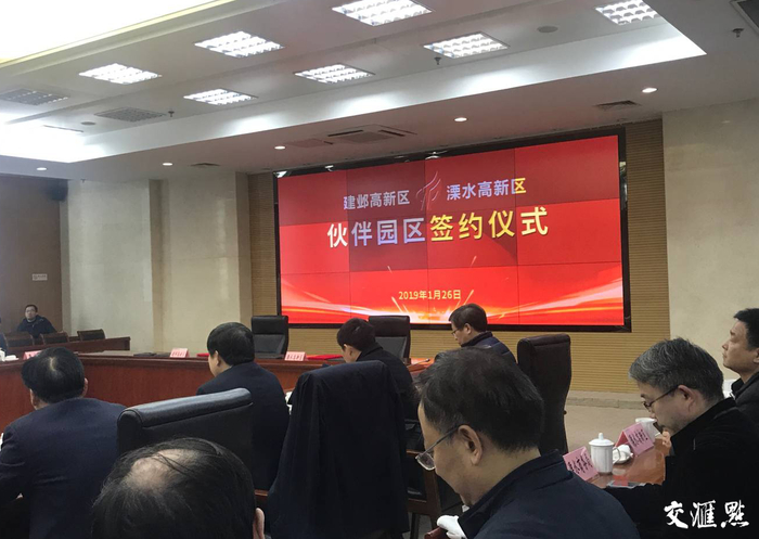 交汇点讯 26日,南京建邺高新区与溧水高新区共同签署伙伴园区建设战略合作协议,当天,建邺区经济飞地、溧水区科创飞地揭牌。科技孵化在城区,产业转化在郊区,建邺高新区与溧水高新区携手,将打造南京第一个“伙伴园区”。