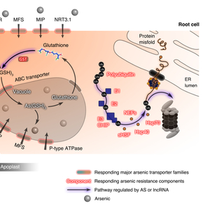 中国科学院植物研究所何振艳研究组通过单分子实时测序全长转录组、差异转录组和液泡膜蛋白质组的方法,获得了不同砷处理情况下蜈蚣草各器官的全长转录本序列、结构、注释、定位和基因表达信息。研究人员通过分析砷响应下蜈蚣草差异基因的表达情况,获得了蜈蚣草砷响应基因表达谱,并以此为基础进行了蜈蚣草砷超富集及其调控分子元件的挖掘。研究发现,蜈蚣草水通道家族(MIP)、主要协助转运蛋白超家族(MFS)、P型ATP酶家族(P-type ATPase)、硝酸盐转运家族(NRT)、亚砷酸盐外排蛋白(ACR3)以及ATP结合盒式蛋白(ATP-binding Cassette)6大类转运蛋白在蜈蚣草砷转运过程中可能起重要作用;内质网相关蛋白质降解途径ERAD和谷胱甘肽代谢途径在转录水平上与蜈蚣草砷抗性密切相关。此外,研究人员还发现lncRNA和可变剪切事件是蜈蚣草砷超富集的重要调控机制。