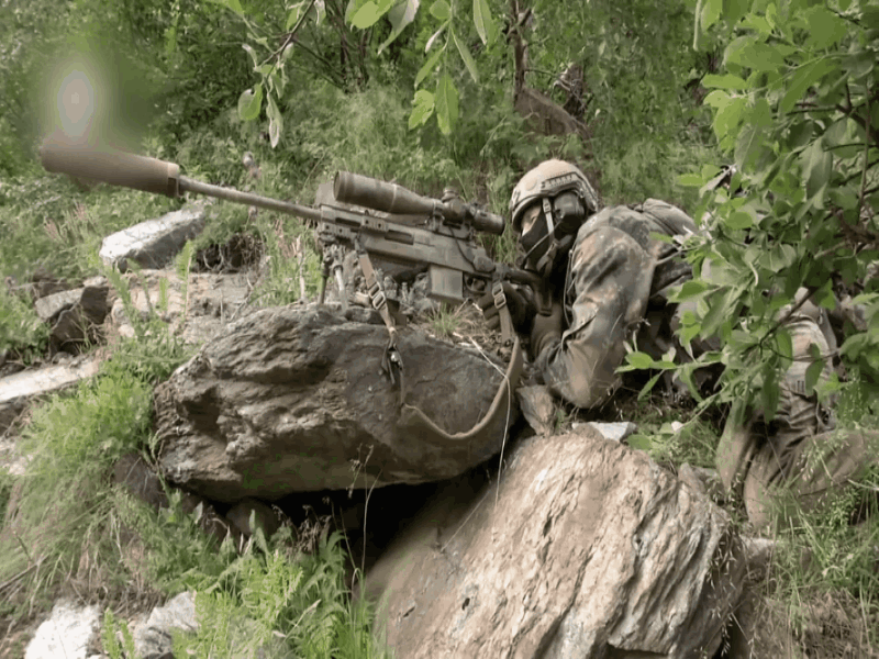 山地狙击训练中还会考验狙击手的应变适应能力,例如会利用树木作“天然脚架”射击高海拔或山脚下的目标等。
