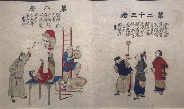 据说,当时的姑苏城,有五十余家画铺,年产版画百万幅以上。且较之明末年画,“姑苏版”年画的刻版更加细密,采用多色套版,还明显可见西方铜版画的阴影和透视手法。民间画工将西方铜版画的特点移植到木版画上,以明暗法表现物象,并手工着色上彩,许多画面上还特意题款“仿泰西笔意”,使“姑苏版”年画表现出对西方科学技术的关注,在无意中成为了文化交流传播的承担者。