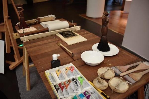 刘海粟美术馆晚间活动现场,体验桃花坞版画印刷