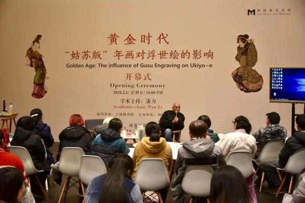 2月1日,“黄金时代:‘姑苏版’年画对浮世绘的影响”刘海粟美术馆开幕,展览展出来自上海图书馆、刘海粟美术馆的馆藏苏州桃花坞木版年画,以及欧洲著名收藏家、汉学家、英国木版教育信托主席冯德保(Christer von der Burg)先生收藏的“姑苏版”复制品和上海汤黎健提供的浮世绘原版藏品。由此探寻西洋画对“姑苏版”年画的影响、“姑苏版”对浮世绘的影响,以及西洋画对浮世绘的影响、浮世绘对印象派的影响。