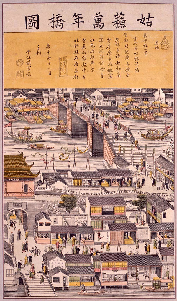 《姑苏万年桥图》,墨版套色,92.3×53.5cm,清乾隆,日本神户市立博物馆藏