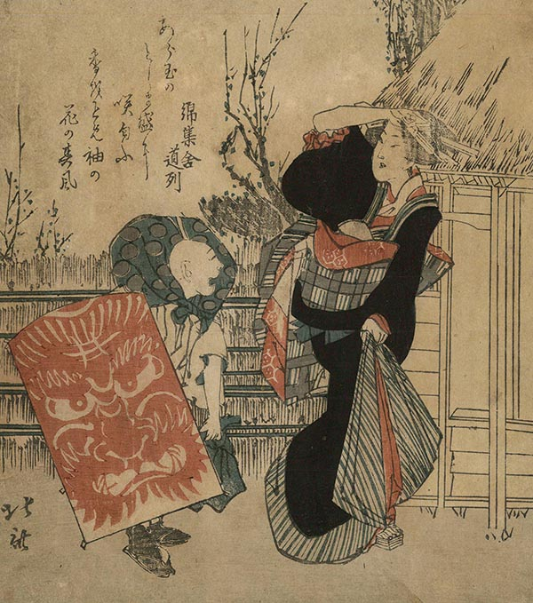 葛饰北斋《美人与拿风筝的孩子》,册页,1820年(汤黎健藏)