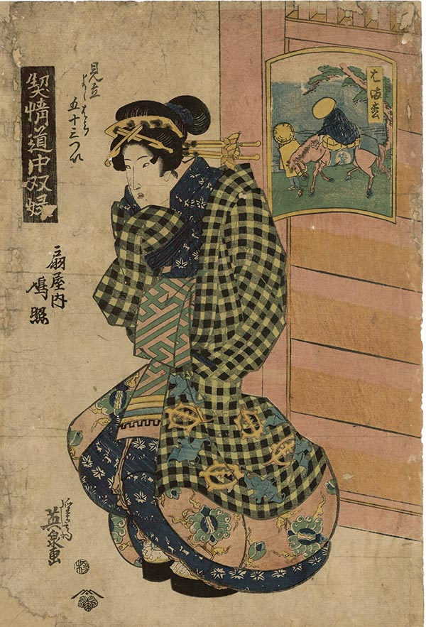 溪斋英泉《契情道中双录 見立吉原五十三対系列之一》,扇屋 鸠照, 大版浮世绘,约1825年(汤黎健藏)