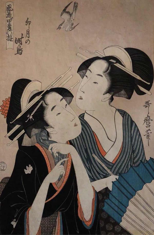 喜多川歌麿 《风流四季游 卯月之时鸟》大版浮世绘,约1793年 (汤黎健藏)