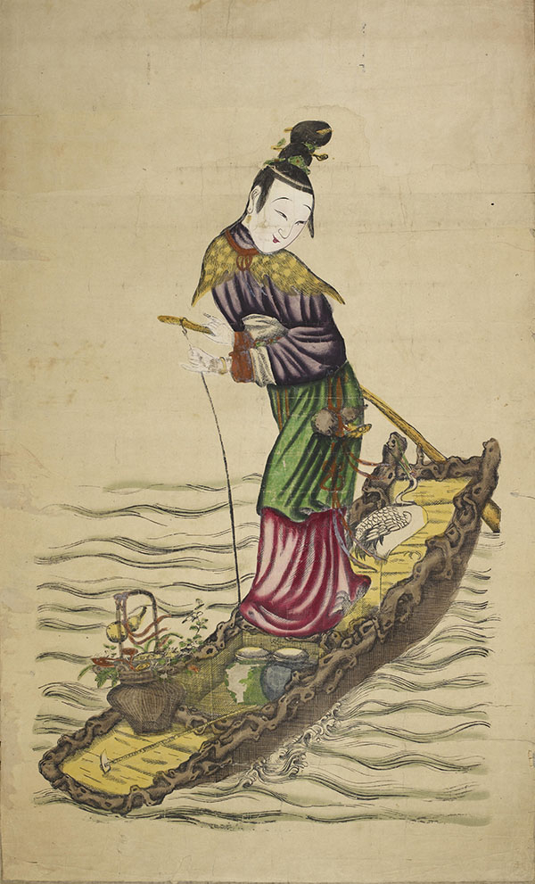 《麻姑献寿》,墨版笔彩,98cm×59cm,乾隆初期(冯德保藏)