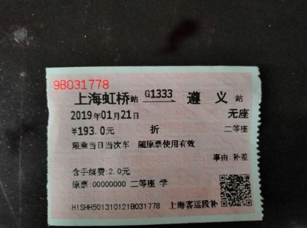 李响上车后补了全价票193元差价。受访者供图