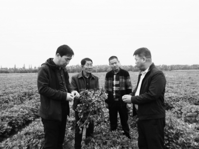 奇村镇党委书记李宁、镇长寇卯红在高油酸花生基地了解生长情况
