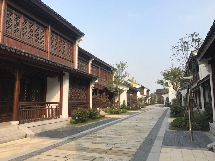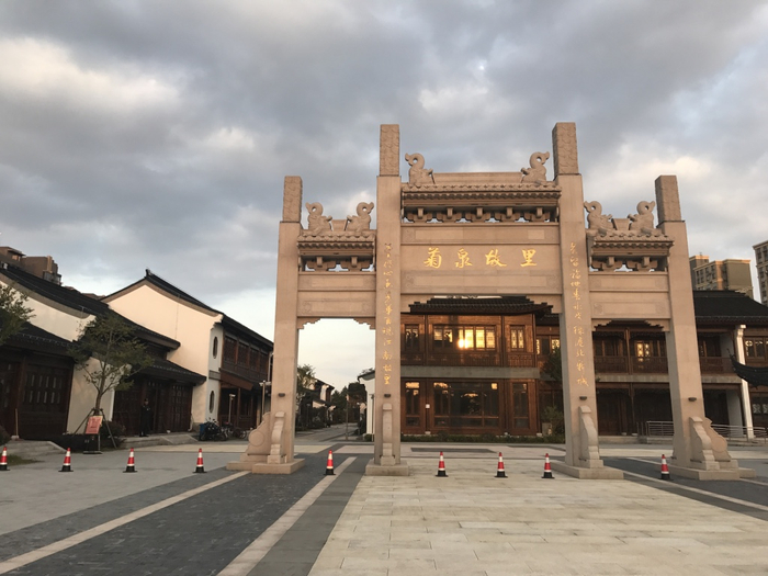 在大居南端,由镇里出资建设、以徽式建筑造型为主、以顾村诗歌为主题的菊泉文化街也已经建成。按照规划,这里将成为未来顾村大居社区文化建设的“新高地”(图14-1,14-2)。