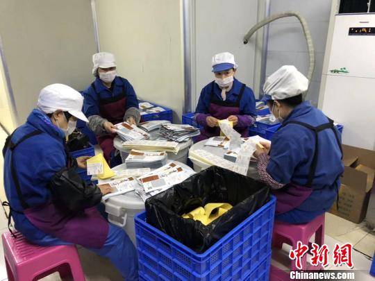 工作人员打包运输麻辣兔头。 贺劭清 摄
