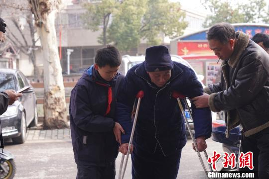志愿者搀扶着老年人进馄饨店。 孙权 摄