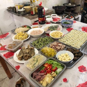 年夜饭的菜品也很丰富,除了冷菜八碟之外,黄鳝、小黄鱼、公鸡等食材全部一应俱全,时令蔬菜也拾掇好了放在案板上,就等午饭时间下锅。