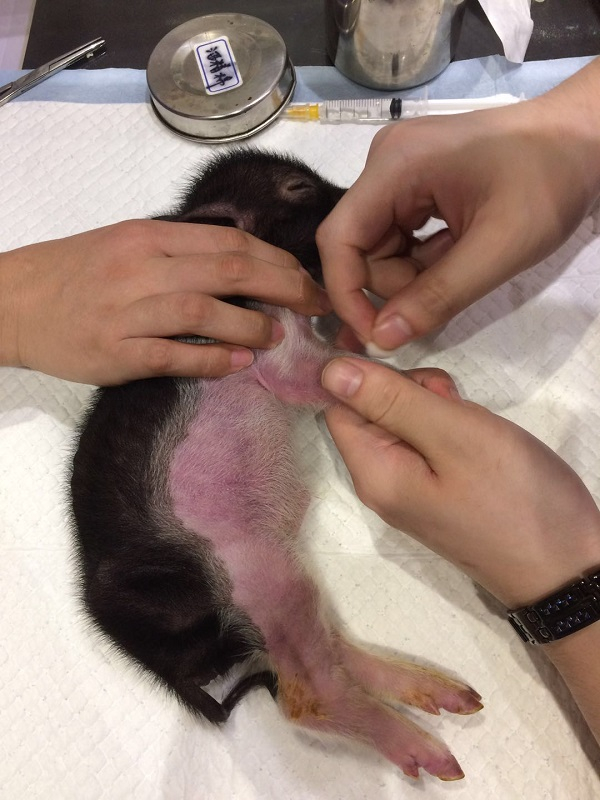 图说:小猪在挂水 来源/上海雨林宠物医院供图
