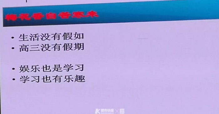 周同学是杭州前三所高中的高三学生。前两天,周同学妈妈刚在微信朋友圈,晒了一张图片出来,上面是班主任老师在期末家长会上的“金句”:生活没有假如,高三没有假期。