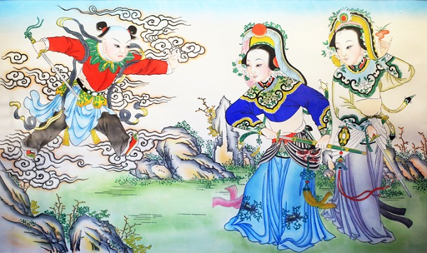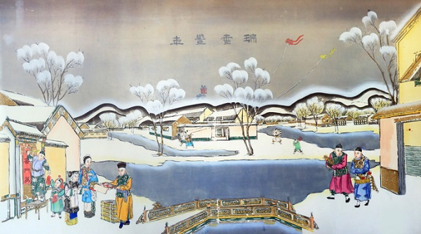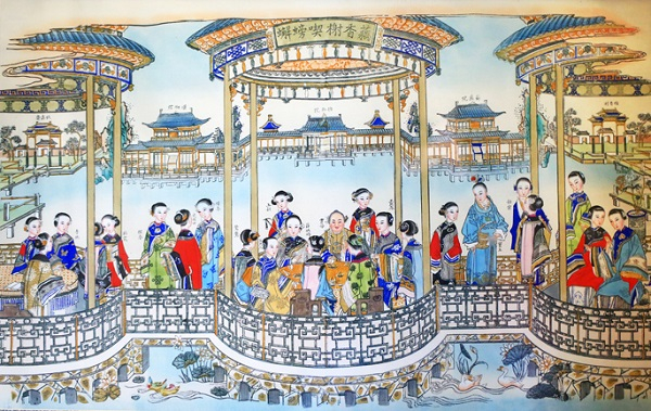 天津杨柳青镇早在明末清初就已成为我国重要的木版年画产地,有着“家家能点染,户户善丹青”的画乡美称。清代光绪以前是杨柳青年画的鼎盛时期,那时以杨柳青镇为中心有300多个作坊,3000人从事杨柳青年画,周边城市也有6000多人从事杨柳青年画。因为杨柳青制作精美,加之距离北京很近,皇宫贵族都喜欢杨柳青绘制精美的年画。据说当年清乾隆皇帝曾到过杨柳青年画店里观赏作画,而且杨柳青年画是唯一可以进宫廷的年画。 天津杨柳青