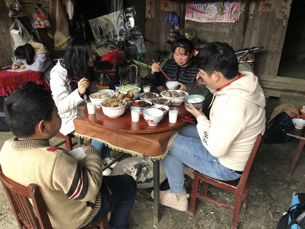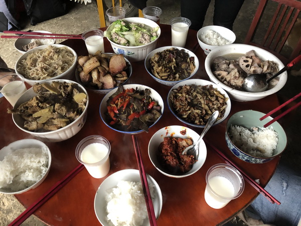 妈妈为你准备了满满一桌饭菜,有家里养的鸡,有你爱吃的牛肉、猪肠,也有只有老家才有的腊肉和辣椒。让我这个外人,也恍惚有和家人一起过年的感觉。回家后,你有些拘谨,不知道怎么在父母面前表达你的感情,表达你的内心,但你还是忍不住说,出门在外,最想念的还是妈妈做的菜。