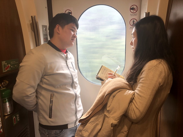陈澳杰第一次坐高铁,他一开始找不到座位。在高铁上,他和高塬分享了他的成长经历。