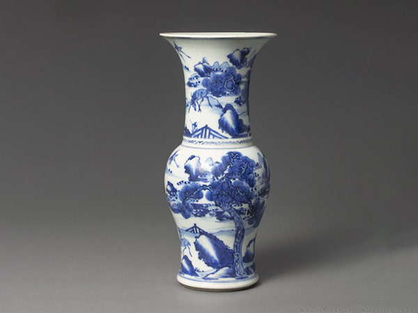 清 康熙,青花松鹤山水鹿纹凤尾瓶
