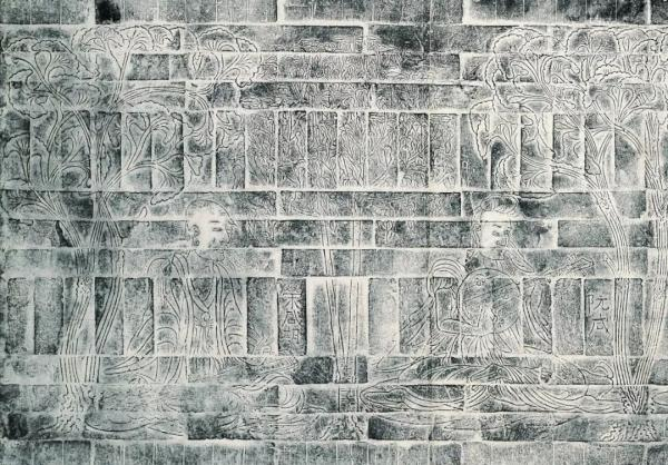 嵇康诗中所言“目送归鸿,手挥五弦”,正是模印画像砖壁画中的嵇康形象。顾恺之将这种“目送”与“手挥”的内在逻辑关系在理论上总结为形神问题,这就有了后世与嵇康相关联的更为形象的概括“手挥五弦易,目送归鸿难”,而模印画像砖上的嵇康形象也就成了诠释这难易关系的经典图像。这一易一难是六朝美学中的核心问题,它建构了影响后世的中国绘画品评的一个重要的准则。