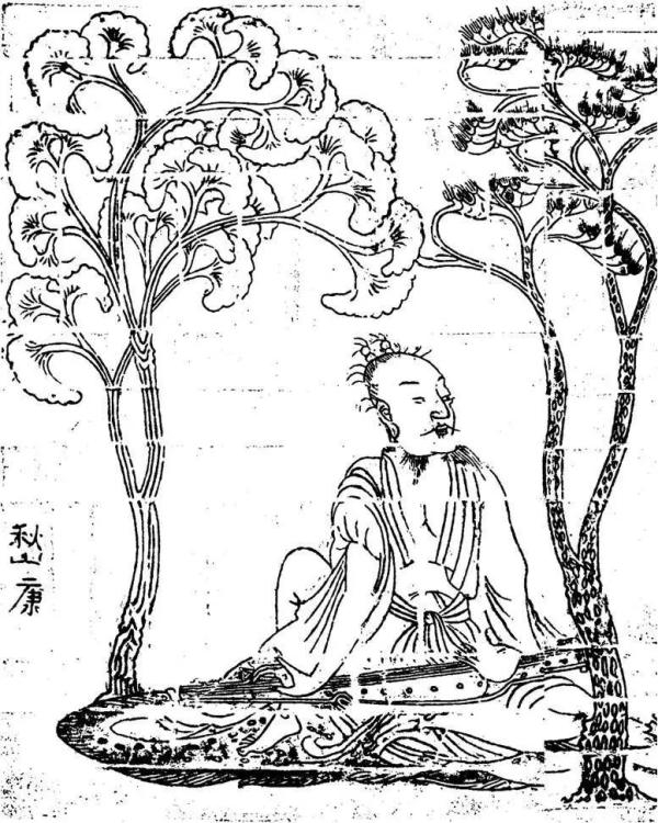 嵇康是曹魏时期的思想家,也是七贤的代表人物。“老子、庄周,吾之师也”,是嵇康的明确表述,他“学养生之术,方外荣华,去滋味,游心于寂寞,以无为为贵”,主张“越名教而任自然”。嵇康的个性中既有“意趣疏远,心性放达”,又有“刚肠疾恶,轻肆直言,遇事便发”。而在诸多细节上也有别于常人,“性复疏懒,筋驽肉缓,头面常一月十五日不洗,不大闷痒,不能沐也。每常小便而忍不起,令胞中略转乃起耳。又纵逸来久,情意傲散,简与礼相背,懒与慢相成”。《竹林七贤与荣启期》中所表现的嵇康席坐抚琴,气宇昂轩,有目送归鸿的神闲气清,还有与礼法相违背懒散与傲慢。这一形象的刻画,很容易让人想到他在生命最后的时刻,索琴弹奏一曲《广陵散》而辞世的凛然,他以此方式面对临刑前为其求情的三千太学生,是其成为一个时代中精神领袖的实至名归,虽然他在世只有40年。嵇康有着多方面的才华,其草书“精光照人,气格凌云”“如抱琴半醉,酣歌高眠,又若众鸟时集,群乌乍散”。张彦远《历代名画记》记载有嵇康的《狮子搏象图》《巢由图》,并与顾恺之、戴逵等同列为名书画家。虽然今天没有嵇康的书画作品传世,但想想、看看那个时代中的顾恺之、王羲之,就能够知道其书画的大致状况。