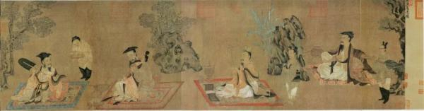 历史上的三国(220年~280年)战争频仍,故事多多。《三国演义》的深入人心正因为“演义”所演绎出的历史故事,官渡之战、赤壁之战等等都表现了一代枭雄的智勇。在这个60年中,樯橹灰飞烟灭。三国开始的新时代虽然远离了秦始皇时代的社会崇尚,可是,神仙思想依旧成为民间的精神支柱,但是,在道法结合基础上形成和发展的玄学于魏初得到强化,加之崇佛思想的蔓延,新的社会思潮带来了社会结构的重要变化。因此,魏晋艺术与此相应也出现了新的变革,并反映出社会深层结构的变化,“魏晋风流”成了这个时代的标识。“七贤”作为这一时期的代表性人物,他们的行为举止,他们的兴趣爱好,成为一个新兴社会阶层的代表,也反映了社会时尚中不同于前朝的新的趋势,并影响了中国绘画主流发展的方向。