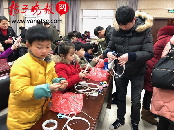 扬子晚报网2月13日讯(记者 张凌发 通讯员 鞠永平 陆丽佳)为满足“小橘灯”志愿者扎花灯送长辈的小小心愿,13日上午,镇江和平路街道一泉社区特意组织会扎花灯的老人,辅导孩子们扎灯。红旗小学二六班五十多位同学和他们的父母初步掌握了扎灯技巧,这也是社区今年开展的规模最大、人数最多的一项文体活动。