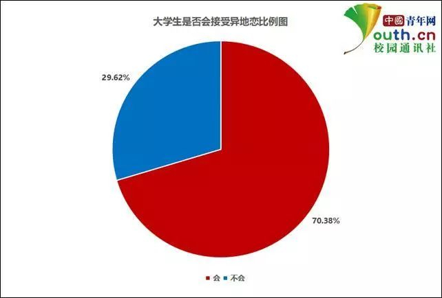 图为大学生是否会接受异地恋比例。中国青年网记者 李华锡 制图
