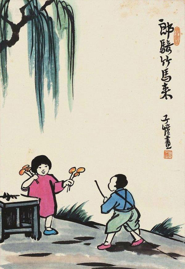 丰子恺绘画作品《郎骑竹马来》(图片来自网络)