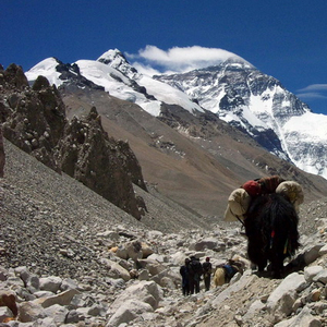 “山脚下的牦牛多达数百只,都是用来驮运货物的。从大本营一直到海拔6500米的登山线路,到处是牦牛的粪便,甚至还有牦牛的尸体。”