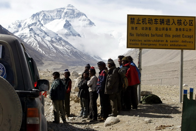 “数十顶帐篷,开饭店的、住宿的、卖小商品的,把进入大本营的路口围得严严实实,垃圾到处都有。”