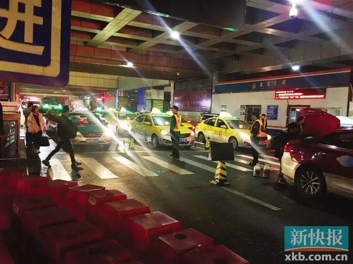 节后春运期间,市交通部门每日安排800台出租车保障广州东站的旅客疏运。在白天乃至凌晨2时,出租车候车处大多排起长队,出租车的疏运能力凸显。在现场工作人员的安排下,乘客放上行李直接上车,司机按下计价器,一气呵成。