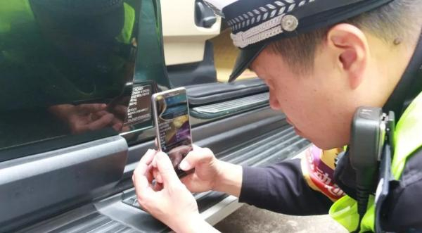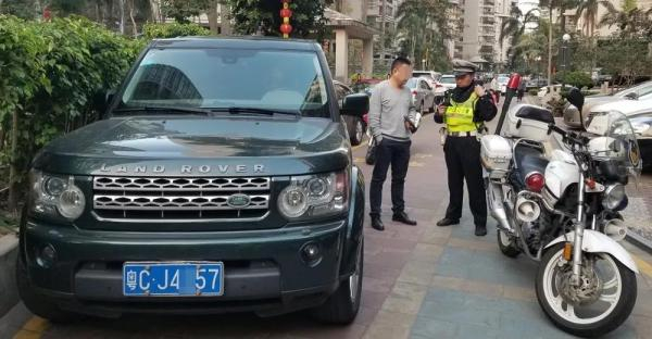 1月30日下午5点40分,交警机动大队齐警官和陈警官在梅华路巡逻,突然手机收到报警短信,一辆粤CJ4×57号路虎小车进入梅华东路某小区。交警立即赶过去,在小区里果然发现这台路虎。齐警官让司机段某出示证件。▼