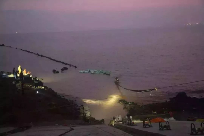 海底电缆正在敷设,准备登陆。(宋印官蔡勇摄)