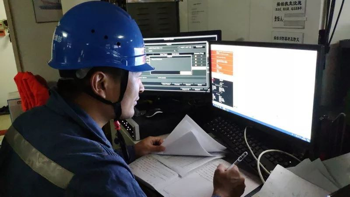 南方电网超高压输电公司广州局海口分局船上工作人员时刻关注船只航行速度、电缆释放速度和位置、海缆敷设张力,保证海缆在敷设过程中不受损伤。张力元摄