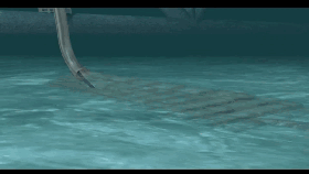 在珊瑚礁及黏土区,用切割机切割一条海底沟槽。