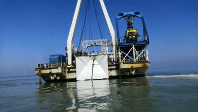 随后拆除浮体,使电缆下沉到电缆沟槽里进行填埋。