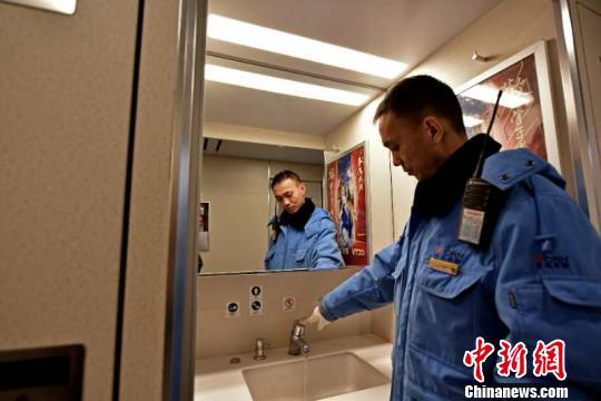 凌晨4点,王文盛开始车内巡检,灯具、座椅、小茶几等基础设施,他都一一检查。“由于春运人多,好多少服务设施,如厕所、饮水机等,使用频率增加,出现故障的概率增大,所以更应该仔细检查,确保其性能百分之百良好。”王文盛说。