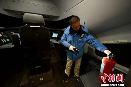 中国铁路太原局集团有限公司动车机械师王文盛开始检查列车。 铁路部门提供