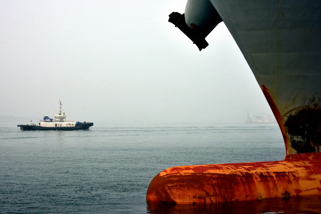 2月10日,曹妃甸锚地,一艘锚泊的干散货船舶值班驾驶员在驾驶台发现,船侧有一条小船使用一条管子连接着本船的柴油舱偷油。随即启动了全船警报。偷油者抽回油管驾着驳船迅速逃走。