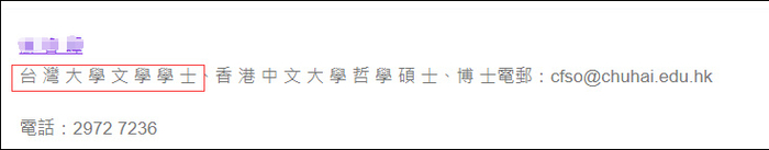 珠海学院的中国文学系教职员工网页显示,有个别副教授的母校是台湾“国立政治大学”,网站使用“台湾政治大学”称呼,也有助理教授的履历中使用“台湾大学”。对此,珠海学院回复称,以上数据由教职员工入职时提供。